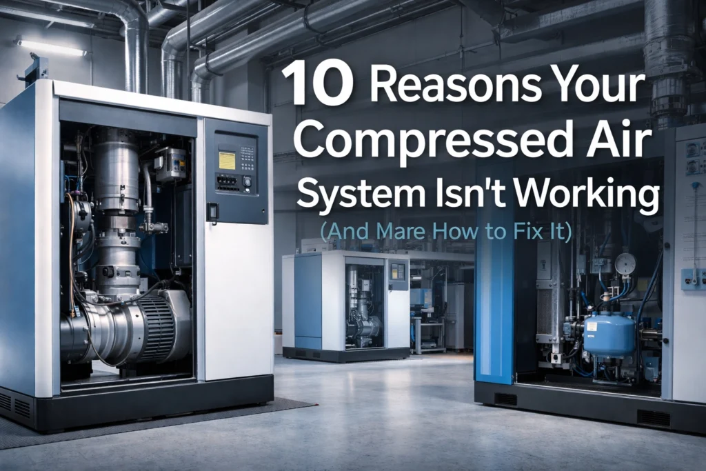 Why Is My Compressed Air System Not Working? Why is my compressed air system not working? Short answer: In most cases, an Energy-Efficient Air Compressor system stops working (or can’t reach pressure/flow) because of leaks, unstable power, clogged filtration, stuck valves, failed drains, or incorrect pressure control settings. Here are the 10 most common troubleshooting […]