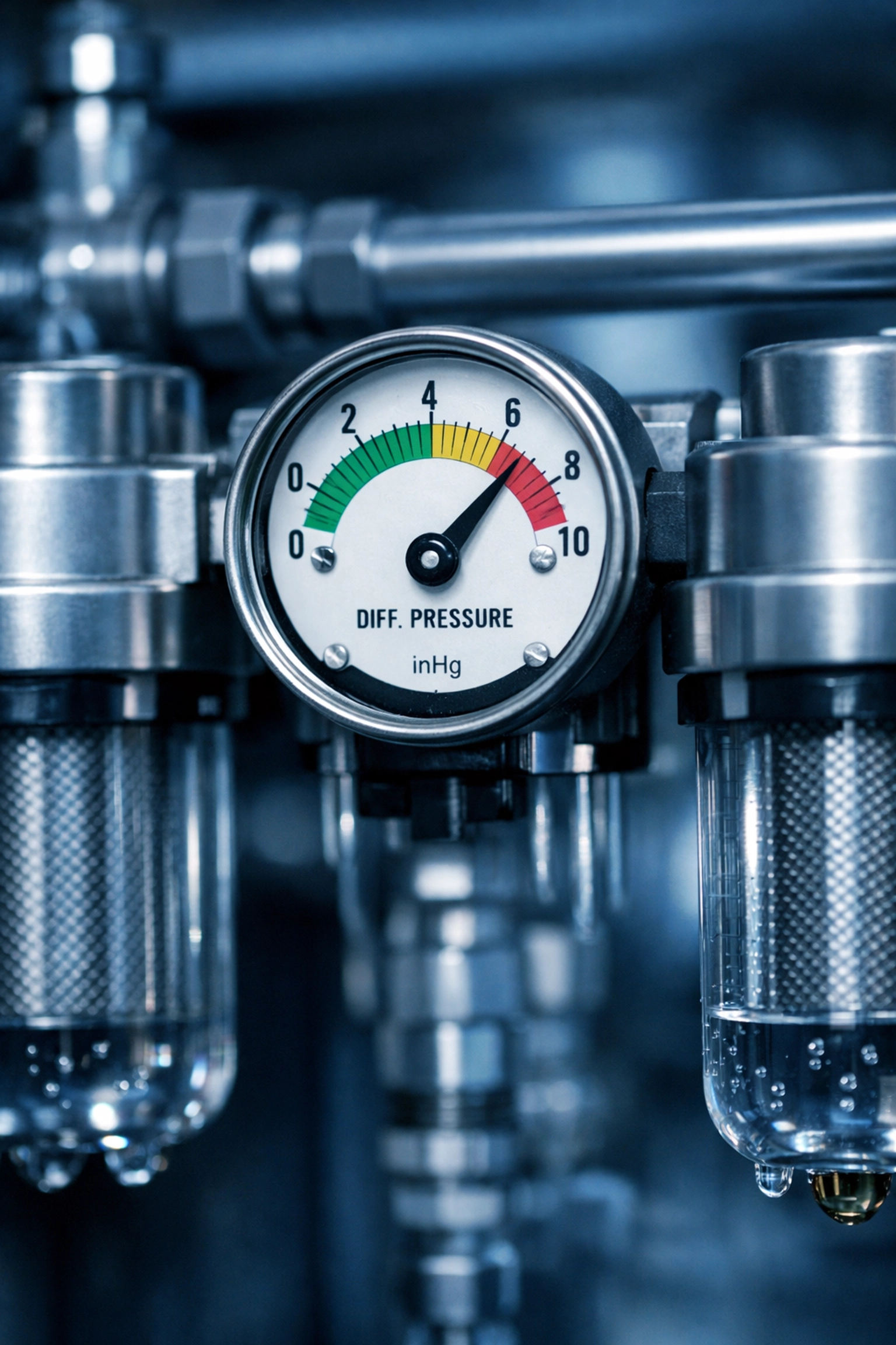 IMAGE: Differential pressure gauge on air filter housing for laser cutting air compressor system