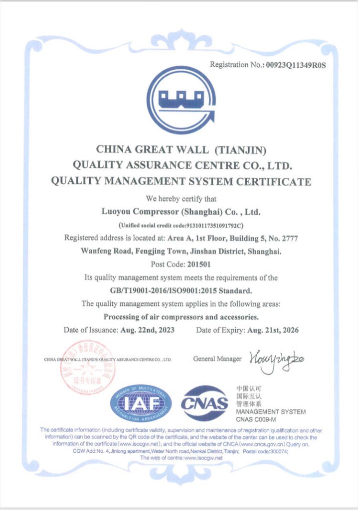 Luoyou Compressor (Shanghai) Co., Ltd., founded in 2015, is a dynamic player in the manufacturing sector, with its business scope covering gas compression machinery, metal – forming machine tools, casting machinery, and general – purpose parts.
