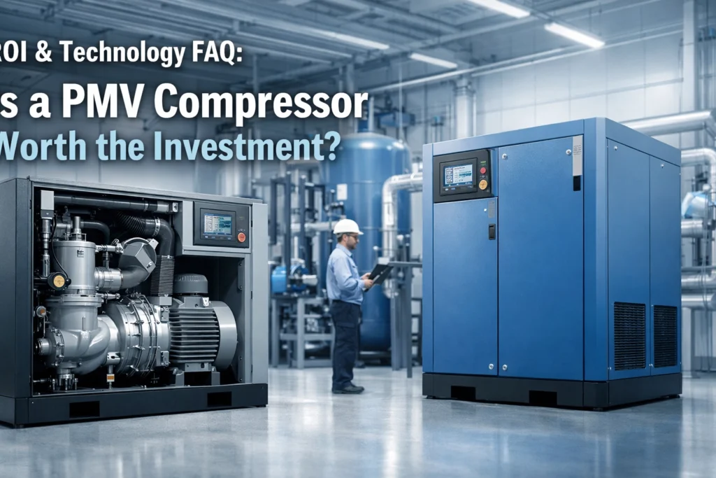 ROI & Technology FAQ: Is a PMV Compressor Worth the Investment? For manufacturing facilities with fluctuating air demand, a Permanent Magnet Variable Frequency (PMV) screw air compressor is absolutely worth the investment, typically delivering energy savings between 30% and 50% compared to fixed-speed alternatives. While the initial purchase price is higher, the return on investment […]